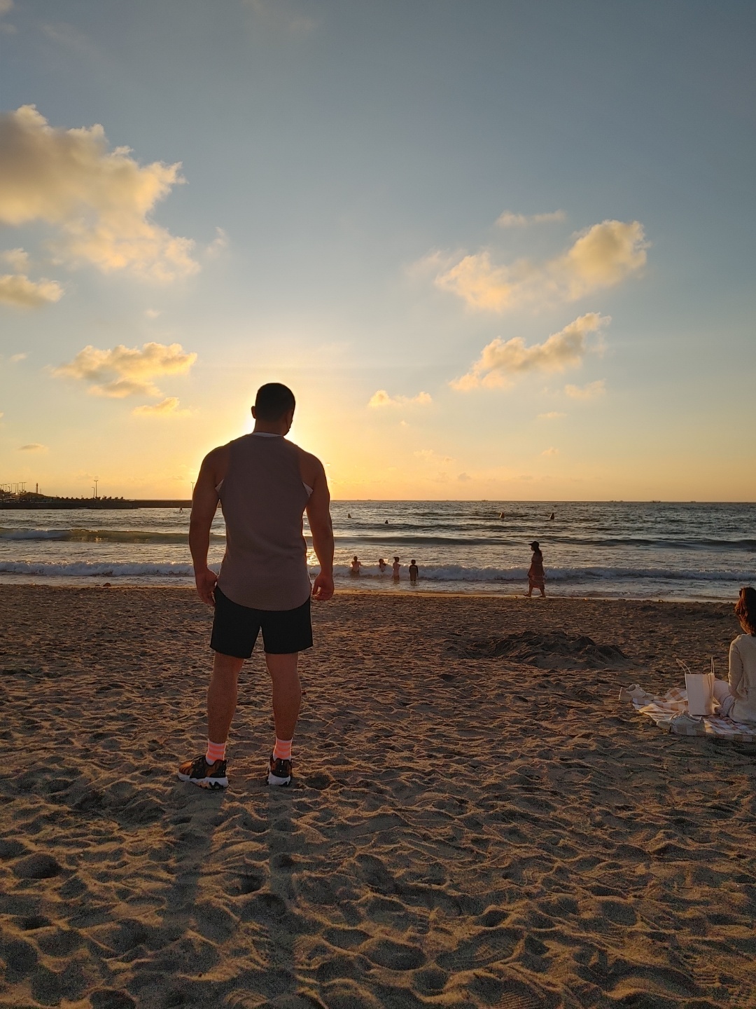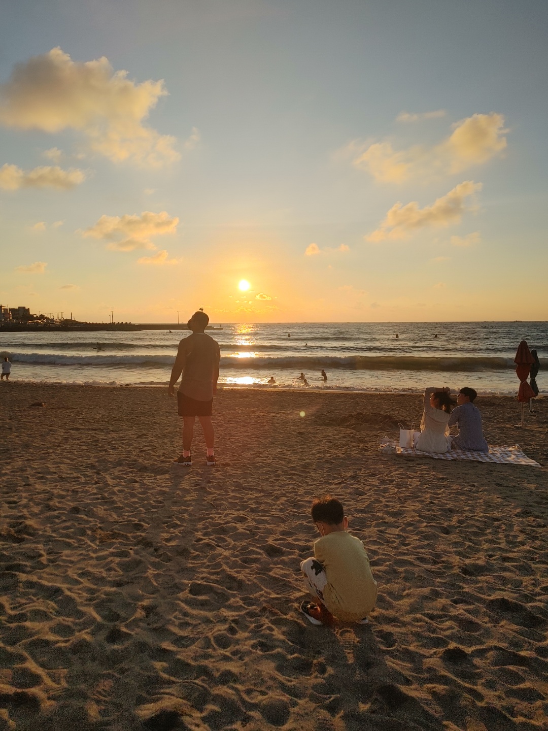 아들은 모래놀이하고 즐겁게 놀고있을때 우리둘이 여유롭에 앉아서 아들 구경중
