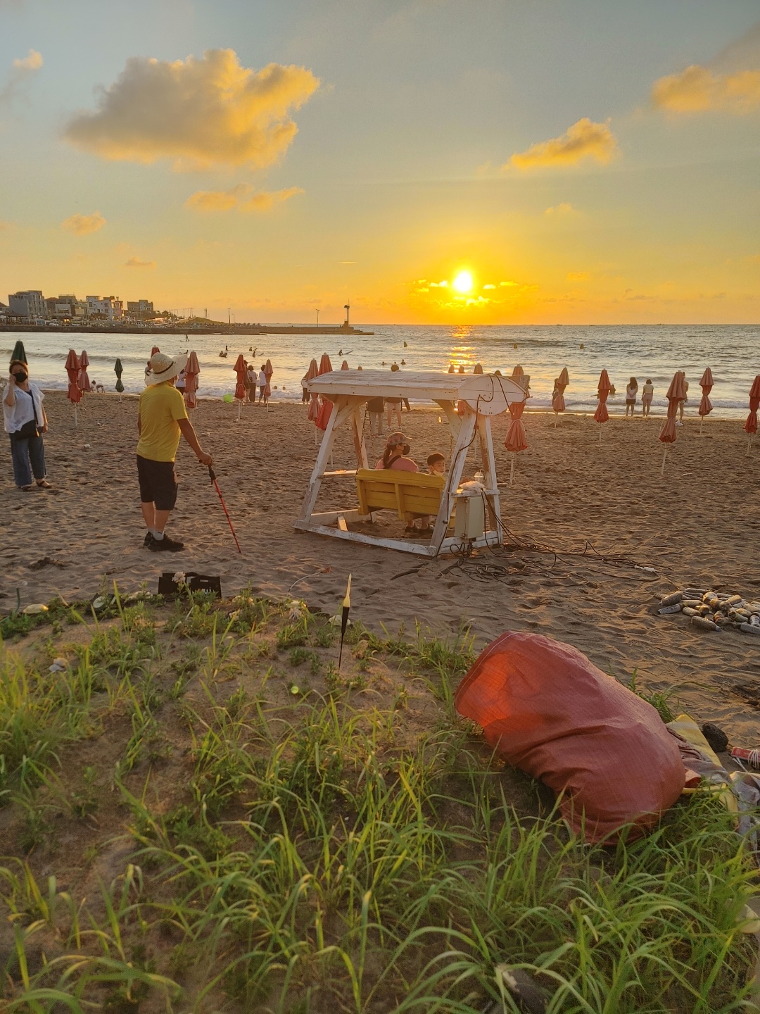 노을이 지는 바닷가에 아들과 함께 앉아서 바로보니 괜시리 뭉클해지는 시간 ,
